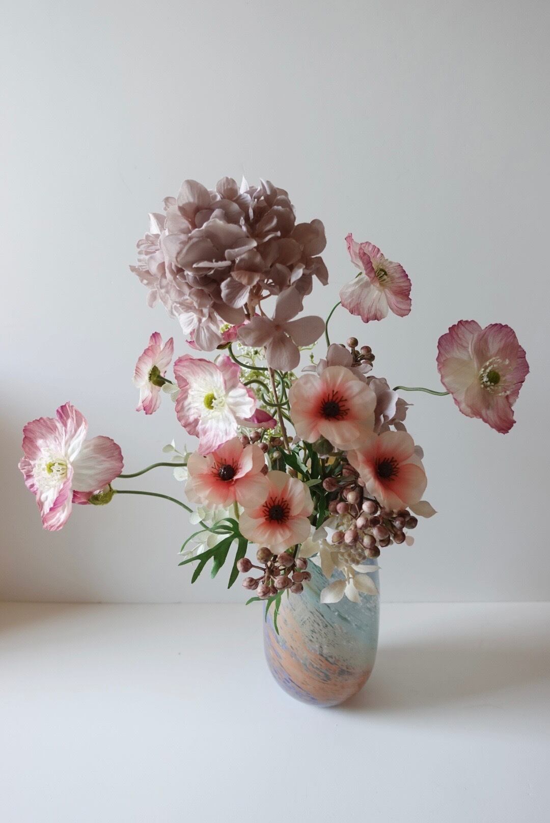 ◆花材 ポピー、ユーカリ、かすみ草、小花、実もの